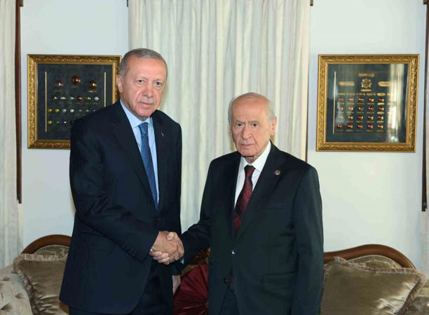 Cumhurbaşkanı Recep Tayyip Erdoğan, MHP Genel Başkanı Devlet Bahçeli ile Beştepe’de bulunan konutunda bir araya geldi.