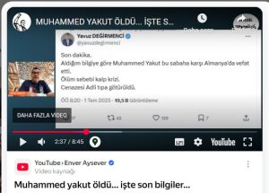 Bir dönem yayınladığı videolarla adından söz ettiren Muhammed Yakut, Almanyada hayatını kaybetti. Yakutun ölüm sebebinin kalp krizi olduğu iddia ediliyor. Konuyla ilgili bir paylaşım yapan gazeteci Yavuz Değirmenci, Yakutun ölümünün normal bir ölüme benzemediğini ileri sürdü ve suikast şüphesiyle soruşturulması gerektiğini savundu.